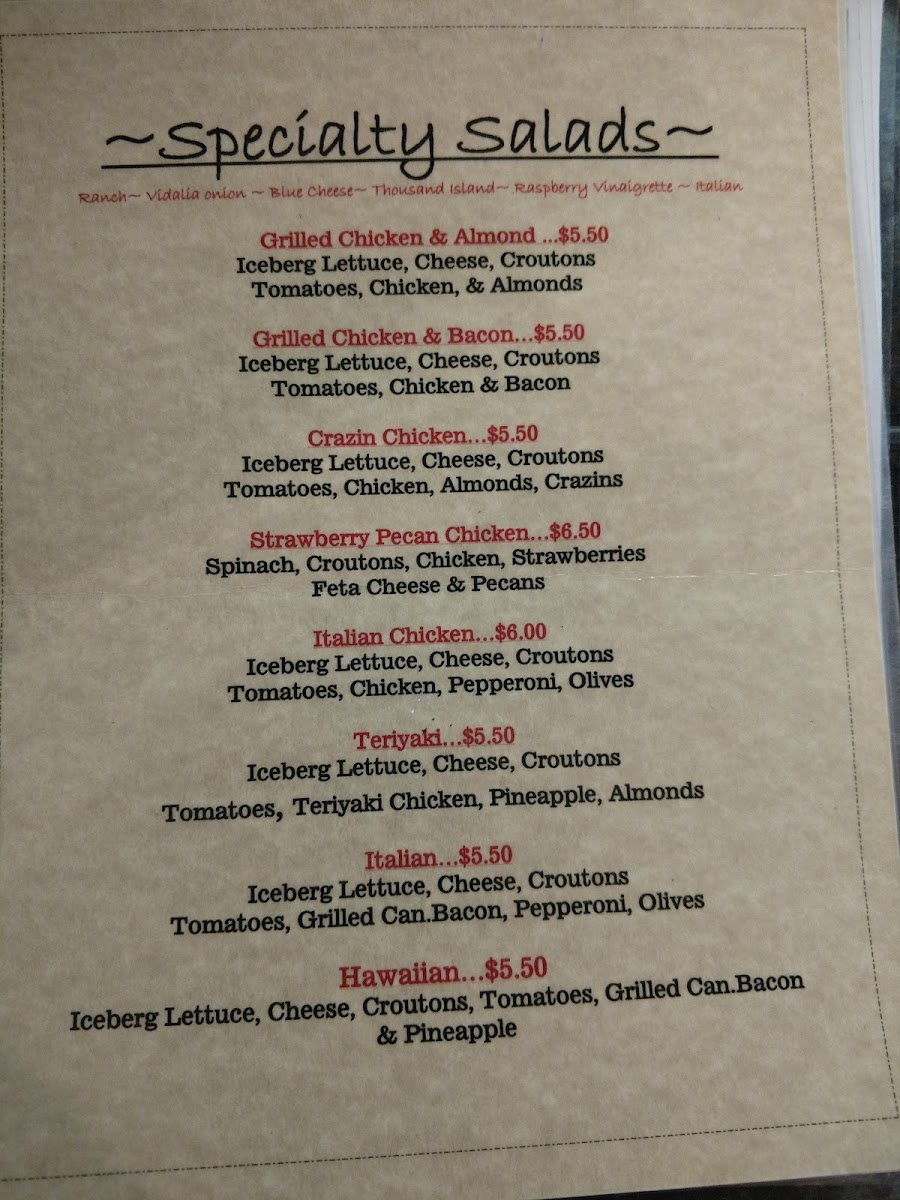 Iceberg Lettuce, Cheese, Croutons, Tomatoes, Chicken, Pineapple, Almonds, Teriyaki Sauce Drizzle
